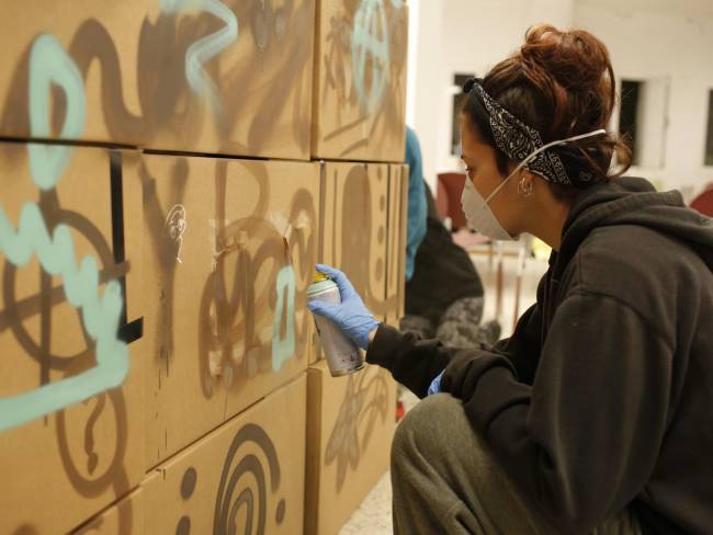 Impartido pola graffiteira e activista, Vegan Bunnies, o obradoiro de introdución á arte urbana de guerrilla organizouse coa vontade de achegar as posibilidades desta disciplina como ferramenta que democratiza a expresión e intervención no espazo público.