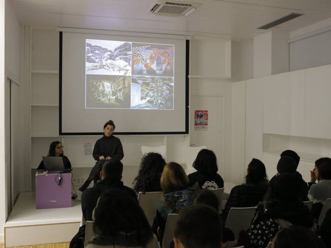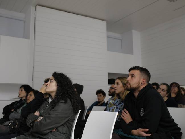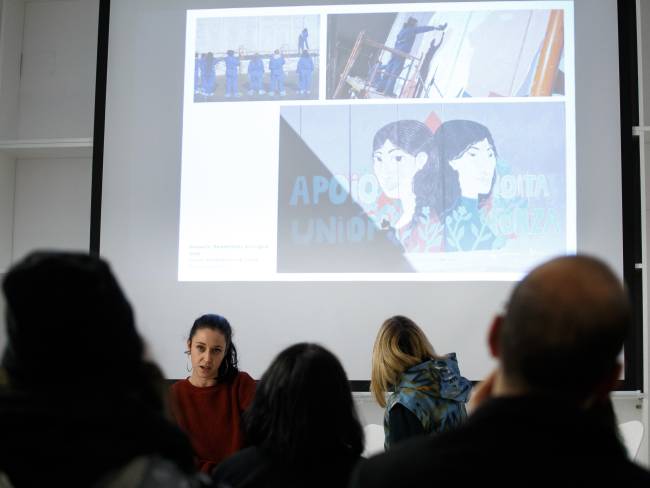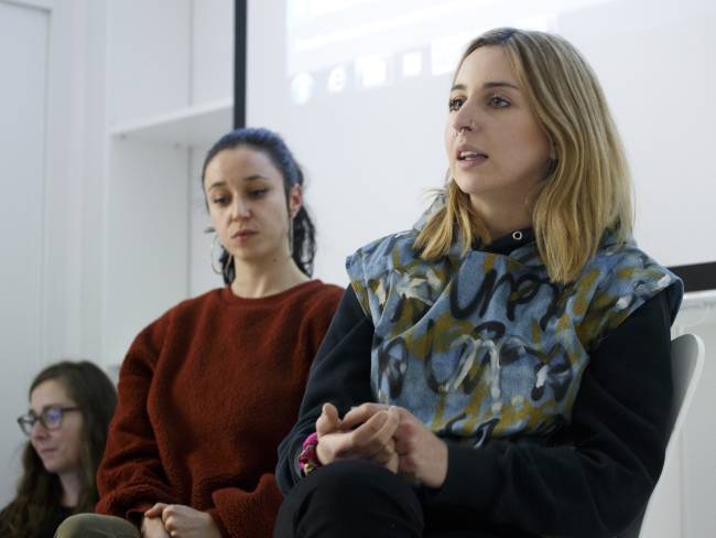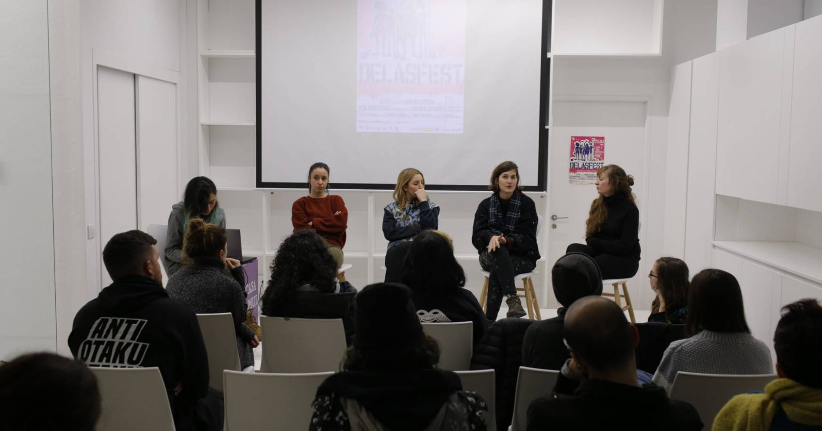 Co obxectivo de combater tamén no plano teórico as desigualdades de xénero existentes no sector, esta xornada de faladoiros contou coa participación de tres das catro artistas encargadas de realizar as intervencións en gran formato, e doutras cinco profesionais do ámbito galego e peninsular.